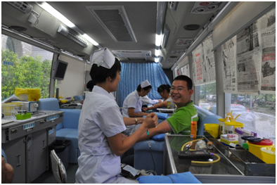8月份公司員工義務(wù)獻(xiàn)血,以緩解因威馬遜臺風(fēng)造成的??谑醒獛旄婕?。