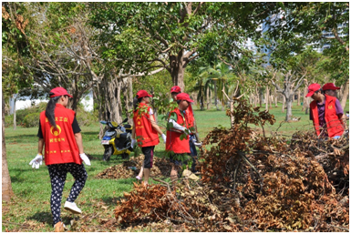 7月26日 公司藍(lán)焰義工隊(duì)在萬綠園開展清理垃圾志愿活動。