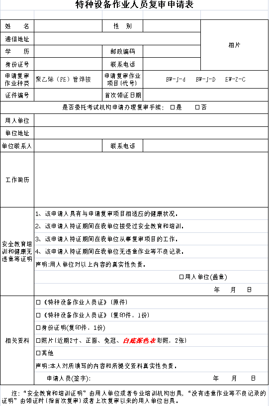 特種設(shè)備焊接操作人員復(fù)審考試申請(qǐng)表
